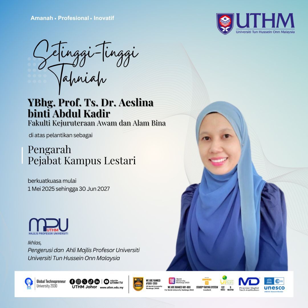 - 23 Julai 2025 - Speaking for UTHM as an 'Academic-Researcher': Invited Speaker @ Malaysia Land Conferences 2025